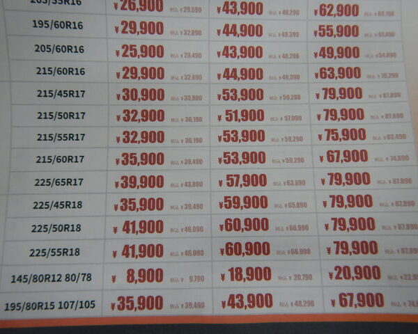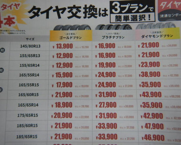 また廃タイヤ処分費・エアバルブ交換・窒素充填・安心保証等も必要に応じて別途かかります